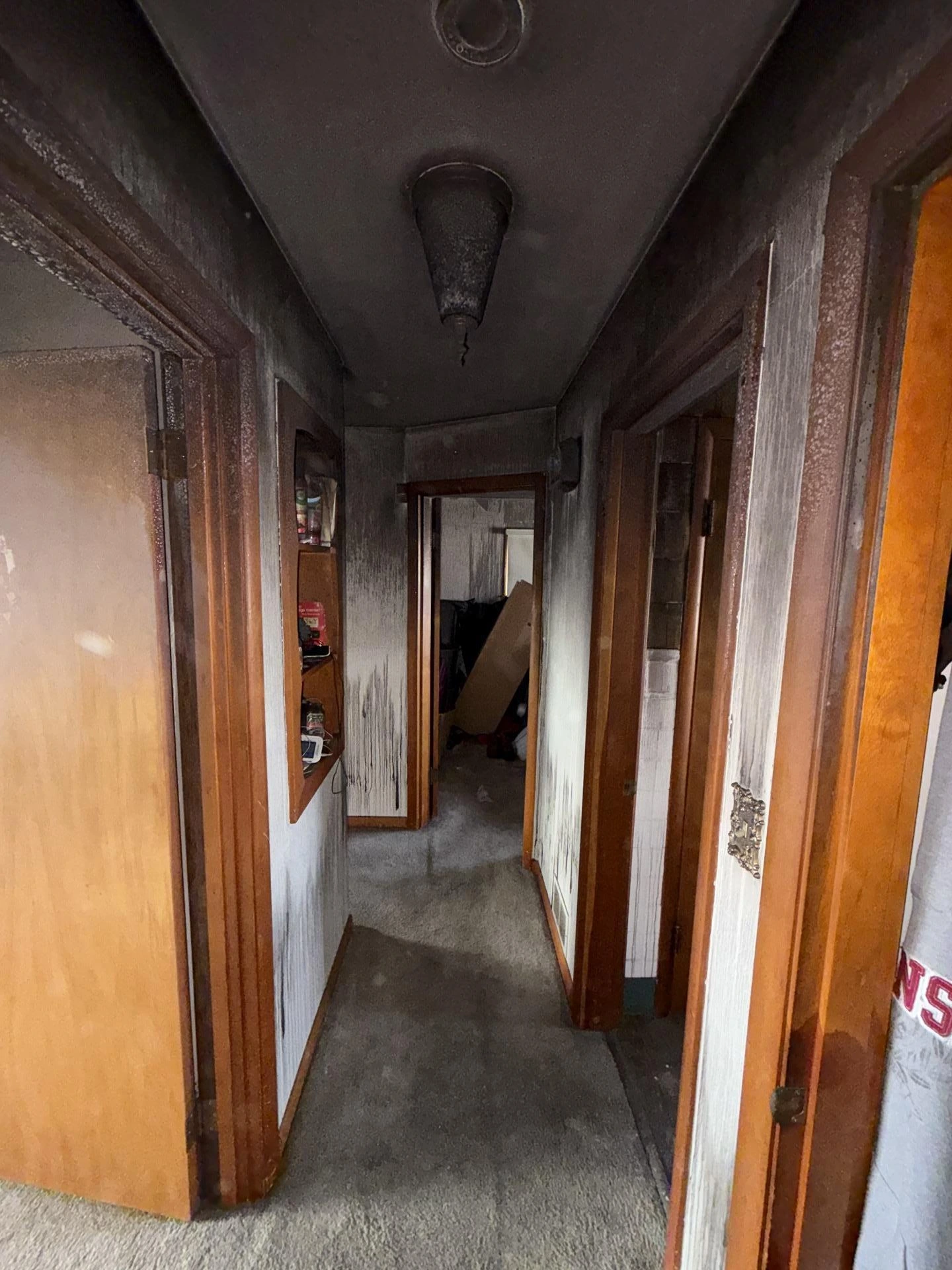We inspect the affected areas to identify fire impact, smoke migration patterns, and soot contamination. We also evaluate structural concerns and moisture issues caused by firefighting efforts.